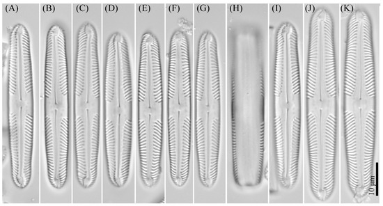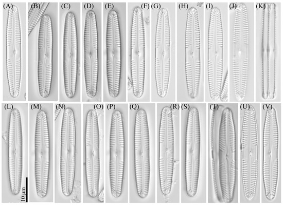 - Liu, Y.; Kociolec, J.P.; Wang, Q.X.; Fan, Y.W. The Diatom Genus Pinnularia from Great Xing’an Mountains, China. Bibliotheca Diatomologica, 65; Cramer in Borntraeger Science Publishers: Stuttgart, Germany, 2018; 298p. [Google Scholar]