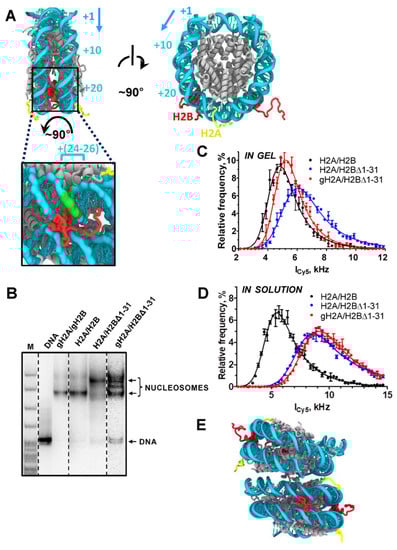 - Mao, P.; Kyriss, M.N.; Hodges, A.J.; Duan, M.; Morris, R.T.; Lavine, M.D.; Topping, T.B.; Gloss, L.M.; Wyrick, J.J. A basic domain in the histone H2B N-terminal tail is important for nucleosome assembly by FACT. Nucleic Acids Res. 2016, 44, 9142–9152. [Google Scholar] [CrossRef]