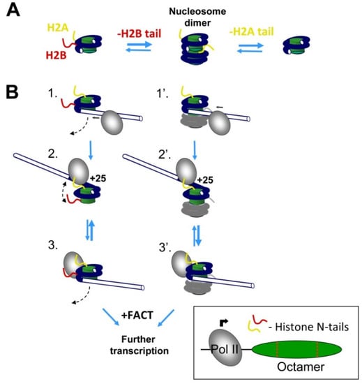 nucleosome; transcription; RNA polymerase II; histone tails; histone H2A; histone H2B; FACT; molecular modeling; spFRET 1. Introduction