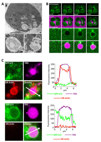 - Martinez, J.; Almendinger, J.; Oberst, A.; Ness, R.; Dillon, C.P.; Fitzgerald, P.; Hengartner, M.O.; Green, D.R. Microtubule-associated protein 1 light chain 3 alpha (LC3)-associated phagocytosis is required for the efficient clearance of dead cells. Proc. Natl. Acad. Sci. USA 2011, 108, 17396–17401. [Google Scholar] [CrossRef]