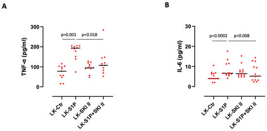 3.4. The Inhibition of SPHKs Reduced the Release of TNF-α and IL-6 after S1P Stimulation of Lung Cancer-Derived PBMCs