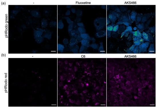 3.5. AKS466 and Fluoxetine Block the Deacidification of Lysosomes
