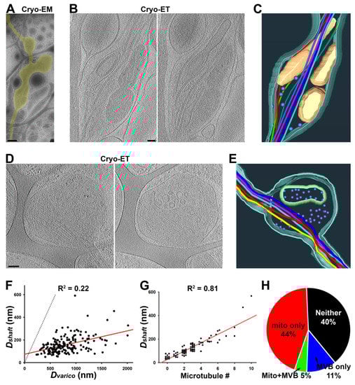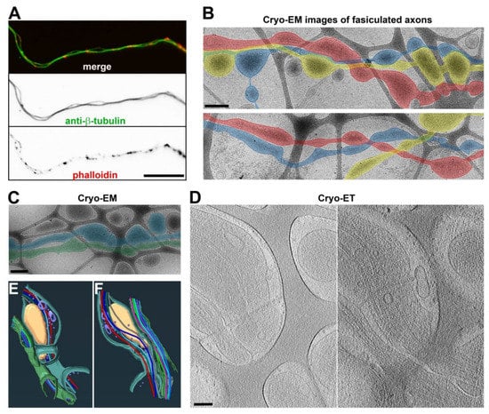- Foster, H.E.; Ventura Santos, C.; Carter, A.P. A cryo-ET survey of microtubules and intracellular compartments in mammalian axons. J. Cell Biol. 2022, 221, e202103154. [Google Scholar] [CrossRef]