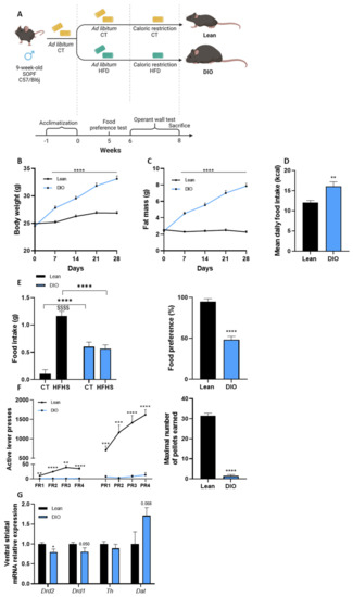 3.1. Diet-Induced Obese Mice Show Behavioral and Neuronal Alterations in Response to Food Reward