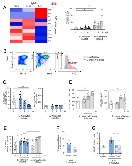 3.5. CD38+Ly6Chi Monocytes Produce ROS and Contribute to Monocyte-Dependent Immunopathology during Hepatic Amebiasis