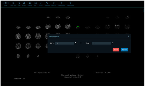 The DAWN and DEFUSE3 trials have confirmed that mechanical thrombectomy (MT) can improve clinical outcomes for AIS patients selected with either CTP or MRI [7,8]. These trials were based on postprocessing results derived from RAPID (iSchemaView, Menlo Park, CA, USA) to triage patients. Inclusion criteria for MT candidacy were proposed in DEFUSE3 as ischemic core volume (ICV) < 70 mL, mismatch ratio > 1.8 and mismatch volume > 15 mL. In clinical centers relying on software packages other than RAPID, extrapolation of the inclusion criteria needs to be validated [9].