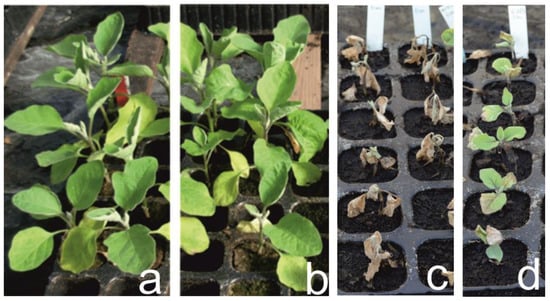 - Komochi, S.; Monma, S.; Narikawa, T.; Sakata, Y. Evaluation of resistance to bacterial wilt and verticillium wilt in eggplants (Solanum melongena L.) collected in Malaysia. J. Jpn. Soc. Hortic. Sci. 1996, 65, 81–88. [Google Scholar]