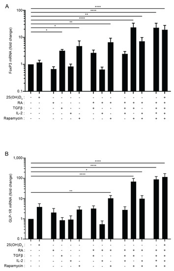 3.3. The Combination of TGFβ, Rapamycin and Retinoic Acid Induces Expression of FoxP3 and GLP-1R in Parallel in T Cells