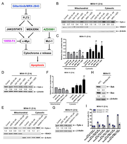 3.5. FLT3 Inhibition Enhances AZD5991-Induced Cytochrome c Release