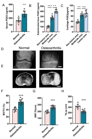 3.2. Elevated PGE2 Is Closely Associated with the Microstructural Alteration of Subchondral Bone in Human Osteoarthritis