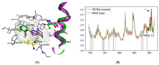 3.3. Computational Analysis of the Mechanism of Agonistic Switch in the VPC14368 Mutant T878A AR LBD