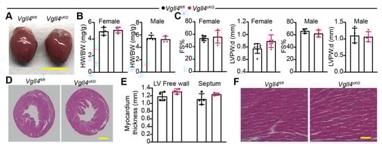 3.3. Whole-Body Deletion of VGLL4 Does Not Affect Myocardial Development and Heart Function