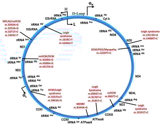 - Shin, W.S.; Tanaka, M.; Suzuki, J.; Hemmi, C.; Toyo-oka, T. A novel homoplasmic mutation in mtDNA with a single evolutionary origin as a risk factor for cardiomyopathy. Am. J. Hum. Genet. 2000, 67, 1617–1620. [Google Scholar] [CrossRef] [PubMed]