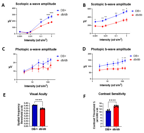 3.1. Retinal and Visual Dysfunctions in db/db Mice
