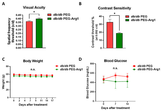3.2. Systemic PEG-Arg1 Treatment Restores Visual Function in db/db Mice