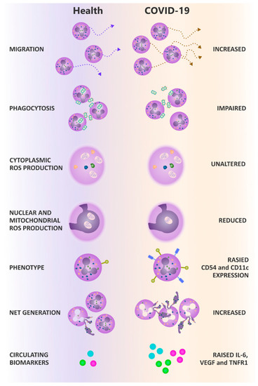 Emerging studies suggest that neutrophils are implicated in the pathogenesis of severe COVID-19 and every reporting study has described cell dysfunction (or inferred cell dysfunction through transcriptomics), which could contribute to tissue damage and secondary infection [20,21,22,23,24,25,26,27] However, studies have often been small, have failed to provide age-matched controls, assessed only patients on the intensive care unit (ICU) after a considerable delay since symptom onset, or considered neutrophil functions in isolation [28].