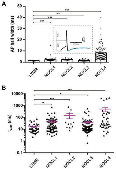 - Fang, X.; McMullan, S.; Lawson, S.N.; Djouhri, L. Electrophysiological differences between nociceptive and non-nociceptive dorsal root ganglion neurones in the rat in vivo. J. Physiol. 2005, 565 Pt 3, 927–943. [Google Scholar] [CrossRef]