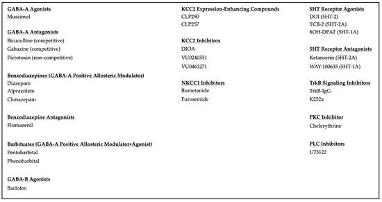- Perez-Sanchez, T.; De Koninck, Y. Regulation of Chloride Gradients and Neural Plasticity. In Oxford Research Encyclopedia: Neuroscience; Oxford University Press: Oxford, UK, 2019. [Google Scholar]