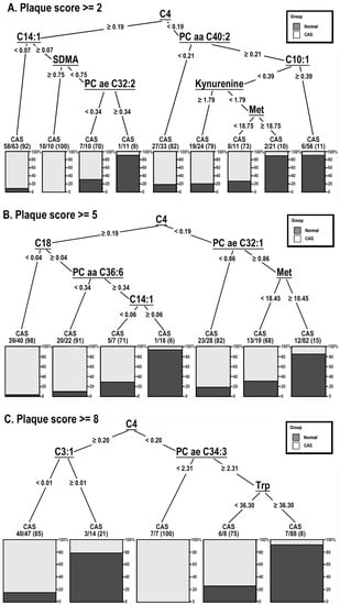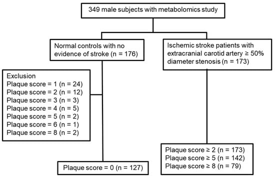 - Lee, T.H.; Cheng, M.L.; Shiao, M.S.; Lin, C.N. Metabolomics study in severe extracranial carotid artery stenosis. BMC Neurol. 2019, 19, 138. [Google Scholar] [CrossRef]