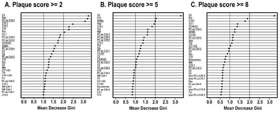 | Metabolite Panel | Plaque Score | Accuracy | Specificity | Sensitivity | PPV | NPV |