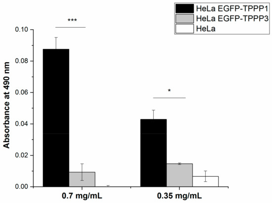 2.16. ELISA on Cells (cELISA) for Detection of the Transfected EGFP-TPPP1 and EGFP-TPPP3