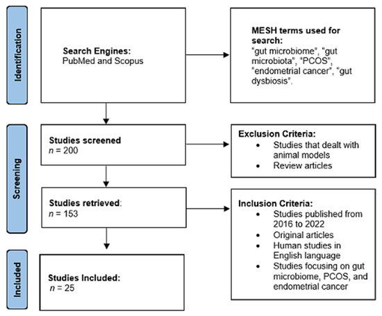 Articles had to be focused on the gut microbiota, PCOS, and EC as well as including specific keywords such as ‘gut microbiome’, ‘gut microbiota’, ‘gut dysbiosis’, ‘PCOS’, and ‘endometrial cancer’.