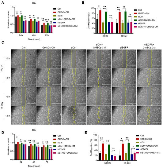 3.5. GMSCs Regulate IR-Induced Activation of the EGFR/STAT3 Signaling Pathway