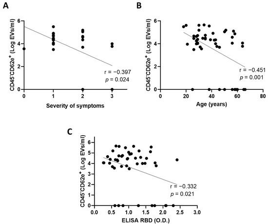 3.3. Extracellular Vesicles Derived from Blood Endothelial Cells Are More Abundant in Convalescent Plasma from Donors with Mild Symptoms