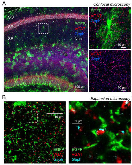 2.1. Expansion Microscopy of GABAergic Synapses and Perisynaptic Astroglia