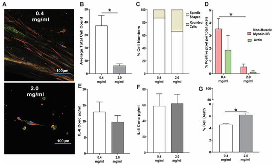 - Zhu, Y.K.; Umino, T.; Liu, X.D.; Wang, H.J.; Romberger, D.J.; Spurzem, J.R.; Rennard, S.I. Contraction of fibroblast-containing collagen gels: Initial collagen concentration regulates the degree of contraction and cell survival. In Vitro Cell. Dev. Biol. Anim. 2001, 37, 10–16. [Google Scholar] [CrossRef]