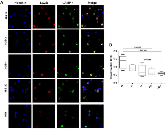 - Hsu, H.-C.; Chen, Y.-H.; Lin, T.-S.; Shen, C.-Y.; Hsieh, S.-C. Systemic lupus erythematosus is associated with impaired autophagic degradation via interleukin-6 in macrophages. Biochim. Biophys. Acta (BBA)—Mol. Basis Dis. 2020, 1867, 166027. [Google Scholar] [CrossRef]