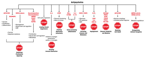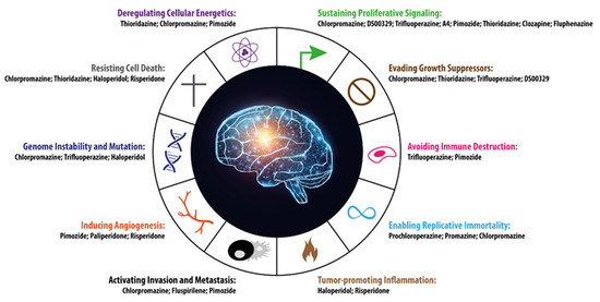 3. The Role of Antipsychotics in Hindering the Growth of GBM Cells at the Ten Cancer Hallmarks
