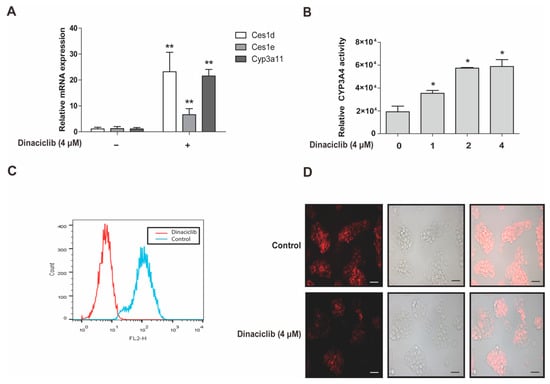 3.5. CDKs Inhibitor Dinaciclib Promotes the Expression and Activity of PXR Target Genes in Primary Hepatocytes and HepG2 Cells