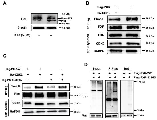 3.6. PXR Phosphorylation at S350 by CDK2 Triggers PXR Degradation via the Ubiquitin-Proteasome Pathway