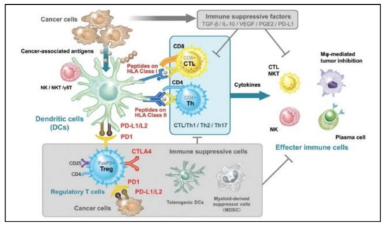 The dual immune stimulatory and immunosuppressive roles of DCs inside the TME. Reproduced with permission from [22]. Copyright 2016, Codon Publications.