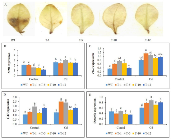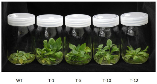 3.5. Hydrogen Peroxide (H2O2) Accumulation in WT and Transgenic Plants