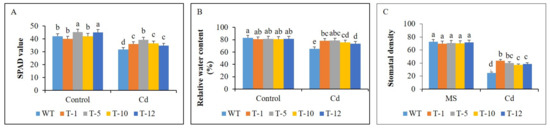 3.3. Plant Growth and Physiological Performance under Control and Cd Stress Conditions