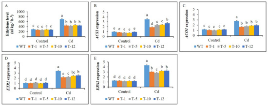 - Schellingen, K.; Van Der Straeten, D.; Vandenbussche, F.; Prinsen, E.; Remans, T.; Vangronsveld, J.; Cuypers, A. Cadmium-induced ethylene production and responses in Arabidopsis thaliana rely on ACS2 and ACS6 gene expression. BMC Plant Biol. 2014, 14, 214. [Google Scholar] [CrossRef] [PubMed]