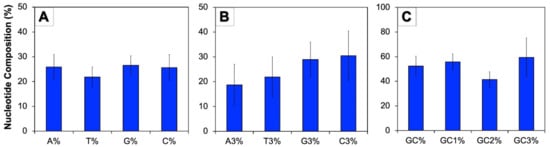 - Sueoka, N. Two Aspects of DNA Base Composition: G+C Content and Translation-Coupled Deviation from Intra-Strand Rule of A=T and G=C. J. Mol. Evol. 1999, 49, 49–62. [Google Scholar] [CrossRef]
