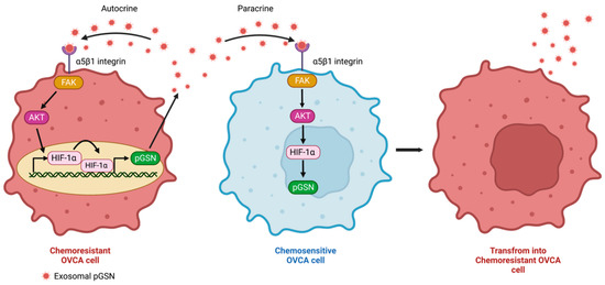 - Asare-Werehene, M.; Nakka, K.; Reunov, A.; Chiu, C.-T.; Lee, W.-T.; Abedini, M.R.; Wang, P.-W.; Shieh, D.-B.; Dilworth, F.J.; Carmona, E.; et al. The Exosome-Mediated Autocrine and Paracrine Actions of Plasma Gelsolin in Ovarian Cancer Chemoresistance. Oncogene 2020, 39, 1600–1616. [Google Scholar] [CrossRef]