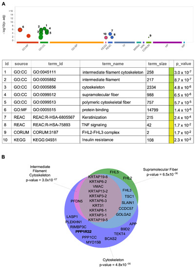 - Raudvere, U.; Kolberg, L.; Kuzmin, I.; Arak, T.; Adler, P.; Peterson, H.; Vilo, J. g:Profiler: A web server for functional enrichment analysis and conversions of gene lists (2019 update). Nucleic Acids Res. 2019, 47, W191–W198. [Google Scholar] [CrossRef] [PubMed]