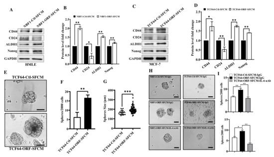 3.5. OPG Upregulation Promotes the Paracrine Pro-Stemness Effect of Breast Stromal Fibroblasts in an IL-6-Dependent Manner