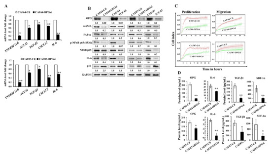 3.8. OPG Downregulation Suppresses the Paracrine Pro-Carcinogenic Effects of Active CAFs