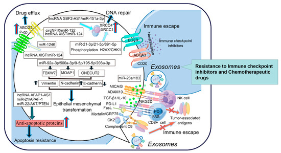 It can be inferred that exosome-mediated apoptosis resistance also contributes to drug resistance, in which transcriptional regulation targeting pro-apoptotic proteins via lncRNAs and miRNAs is involved.