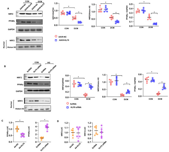 Li, F.; Peng, J.; Feng, H.; Yang, Y.; Gao, J.; Liu, C.; Xu, J.; Zhao, Y.; Pan, S.; Wang, Y.; et al. KLF9 Aggravates Streptozotocin-Induced Diabetic Cardiomyopathy by Inhibiting PPARγ/NRF2 Signalling. Cells 2022, 11, 3393. https://doi.org/10.3390/cells11213393