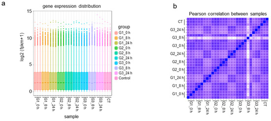 In order to further compare the effects of animal-based enzymes and animal-origin-free enzymes on gene expression levels, we used the sum of the differential genes of Vero cells (0 h group) and the control group to digest the animal-based enzymes and animal-origin-free enzymes at 37 °C; as for the gene list, the 0 h group, the 8 h group, and the 24 h group were detached with the two detachment solutions for cluster analysis. The heat map is shown in Figure 3e. The results show that, in the cluster analysis, the 37 °C animal-origin-free enzymes 0 h group (i.e., G2_0h) was the closest to the control group (i.e., Control), and the 37 °C animal-based enzymes 0 h group (i.e., G1_0h) was the farthest from the control group. The result indicates that the gene expression level of the 37 °C animal-origin-free enzymes 0 h group was the closest to the control group, and the difference between the 37 °C animal-based enzymes 0 h group and the control group was the largest. To sum up, during the detachment process, the animal-based enzymes had a greater effect on the expression level of cellular genes than the animal-origin-free enzymes.