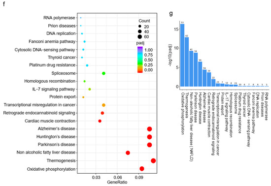 In order to explore which physiological functions are involved in the genes affected by animal-based enzymes and animal-origin-free enzymes, we performed KEGG pathway enrichment analysis on the differentially expressed genes. The KEGG pathway enrichment bubble map is shown in Figure 3f, and the histogram of differences between KEGG pathways is shown in Figure 3g. The results show that the animal-based enzymes had the most significant effect on the oxidative phosphorylation pathway: a total of 53 genes in this pathway had significant changes in expression levels (Table S1), of which the COX17 gene expression level was significantly reduced. Since COX17 is a Cytochrome C Oxidase Copper Chaperone [35], COX17 plays an important role in the process of transporting Cu to the mitochondria. Therefore, animal-based enzymes may affect the normal physiological function of mitochondria.