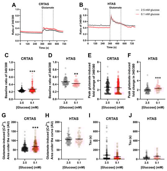 3.3. CRTAS and HTAS Glutamate Responsiveness after One Hour of Normal or Low Glucose