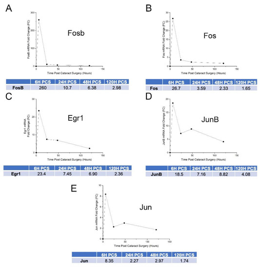 3.2. Many Immediate Early Transcription Factors Are Upregulated in LECs by 6 h PCS