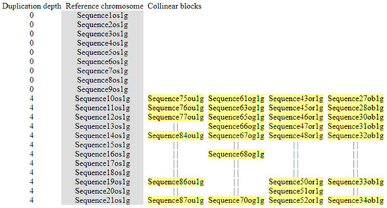 Information on synteny and collinearity is important in unravelling the evolutionary history of genomes and gene families for the identification of functionally linked genes. Syntenic blocks, also referred to as collinearity blocks, reflect conserved gene orders/patterns across the genomes [59]. They are identified through the homology analysis of the genomes at the micro- or macrosynteny levels. Synteny comparisons between closely related eukaryotic species revealed that homologous genes were retained on the corresponding chromosomes [60]. In a collinear block, anchor genes are more likely to be homologous [61] and tend to be the subject of a stronger purifying selection than non-anchor genes [62]. One aspect of genome-wide comparative genomics through synteny analyses is the identification of the pattern of the genomic segments of orthologs among different species. This is helpful in understanding the evolutionary processes that lead to diversification of chromosomes and structural lineages among different species [63,64].